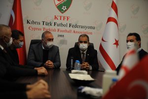 Başbakan Faiz Sucuoğlu, beraberindeki heyetle KTFF Başkanı Hasan Sertoğlu’nu ziyaret etti…Sucuoğlu’na UBP Lefkoşa Milletvekili Adayı Hasan Taçoy ve Başbakanlık Müsteşarı Hüseyin Cahitoğlu eşlik etti…