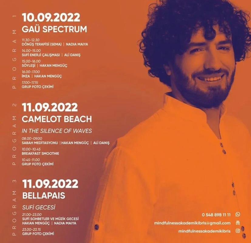 İkinci gün GAÜ Camelot Tesislerinde “Dalgaların Sessizliğinde Meditasyon” başlığı ile Hakan Mengüç’ün yöneteceği meditasyon çalışması gerçekleşecek. Sempozyum, akşam, Bellapais Manastırında “Sufi Müzikleri Gecesi” ile son bulacak. Sempozyumda, biletli 3 etkinliğin tamamına katılan konuklara, Hakan Mengüç’ün son kitabı hediye edilecek.