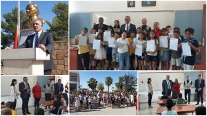 The Minister of National Education Nazım Çavuşoğlu attended the handing out of report cards at the İskele Şehit İlker Karter Primary School.