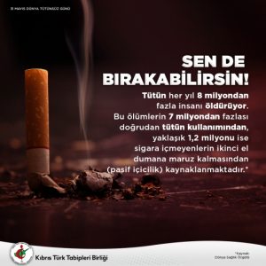 Kıbrıs Türk Tabipleri Birliği (KTTB) küresel tütün salgınının, önlenebilir hastalık ve ölüm sebepleri arasında ilk sırada yer aldığını bildirdi.