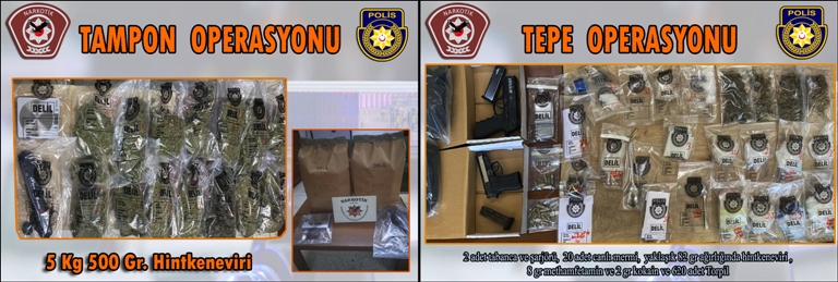 Öte yandan bugün sabah saat 05.30 sıralarında, Gazimağusa’da Narkotik ve Kaçakçılığı Önleme Müdürlüğü ekipleri tarafından gerçekleştirilen “Tepe Operasyonu” sonucu; 2 tabanca ve şarjörü, 20 canlı mermi, yaklaşık 92 gr ağırlığında uyuşturucu olduğuna inanılan madde ile 2 öğütücü, bir hassas terazi ve patlayıcı madde sınıfına giren 620 adet torpil bulunarak emere olarak alındı.