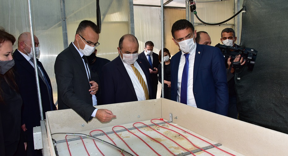 Tarım ve Doğal Kaynaklar Bakanı Dursun Oğuz, Türkiye’nin Lefkoşa Büyükelçisi Ali Murat Başçeri ve Türk İşbirliği Koordinasyon Ajansı (TİKA) Lefkoşa Koordinatörü Havva Pınar Özcan Küçükçavuş Güzelyurt’taki Tarımsal Araştırma Enstitü’nün istasyonunda incelemelerde bulundu.