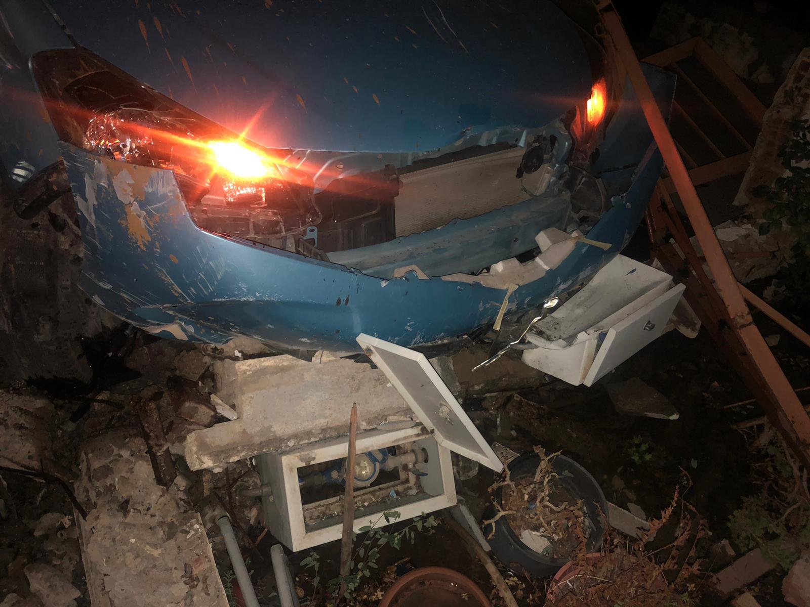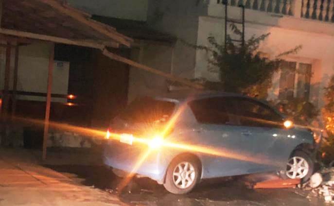 Taşkınköy’de direksiyon hakimiyetini kaybeden alkollü sürücü bahçe duvarına çarptı