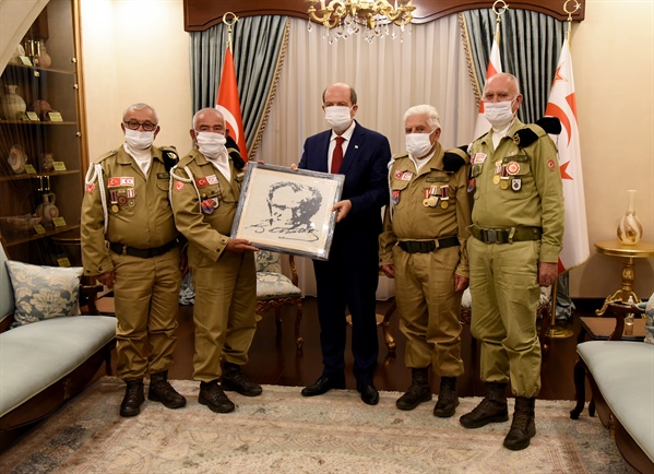 Cumhurbaşkanı Tatar da, gençliğinin en güzel yıllarını vatan ve millet savunması için harcamış eski mücahitleri Cumhurbaşkanlığı’nda görmekten mutlu olduğunu ve duygulandığını söyledi.