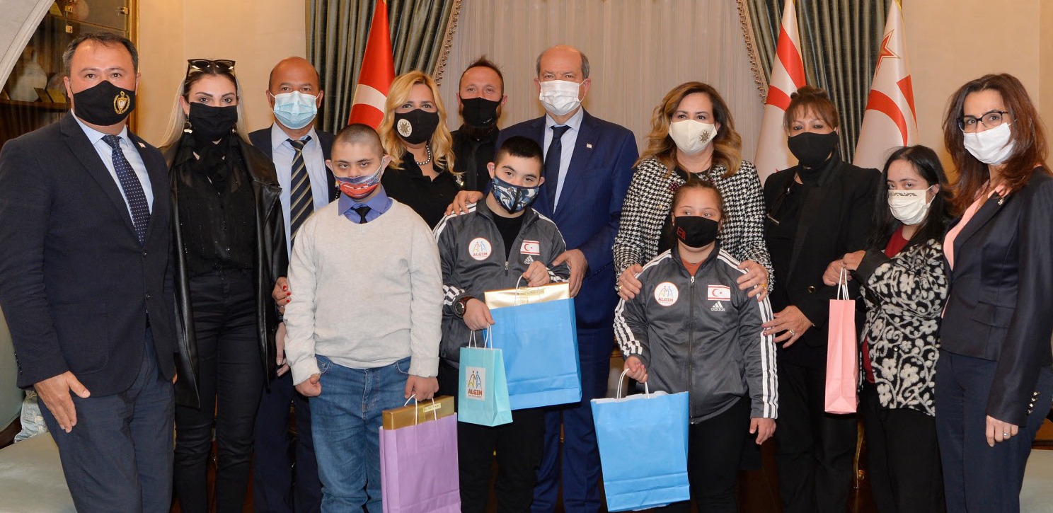 Cumhurbaşkanı Ersin Tatar ve eşi Sibel Tatar, 21 Mart Dünya Down Sendromu Farkındalık Günü dolayısıyla Lefkoşa Özel Eğitim ve Algı Özel Eğitim okullarından down sendromlu çocukları ve öğretmenlerini kabul etti.
