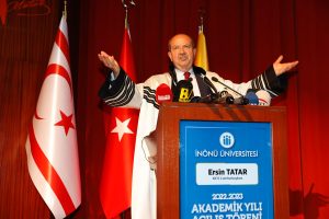 Following his lecture, President Ersin Tatar was bestowed an honorary doctorate by the İnönü University’s Senate for his contributions to “Regional Peace and the Struggle for the Existence of the TRNC.”