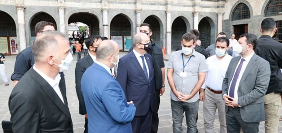 Cumhurbaşkanı Ersin Tatar, Diyarbakır’da Ulucami’yi ziyaret etti. Ulucami çıkışında basına açıklamalarda bulunan Tatar, “Dİyarbakır ile Kıbrıs arasında çok önemli bağlar ve gönül birliği vardır” ifadelerini kullandı .