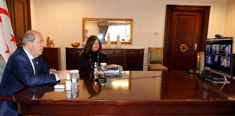 Cumhurbaşkanı Ersin Tatar ile Ekonomi ve Doğal Kaynaklar Komitesi üyeleri çevrim içi toplantı gerçekleştirdi..