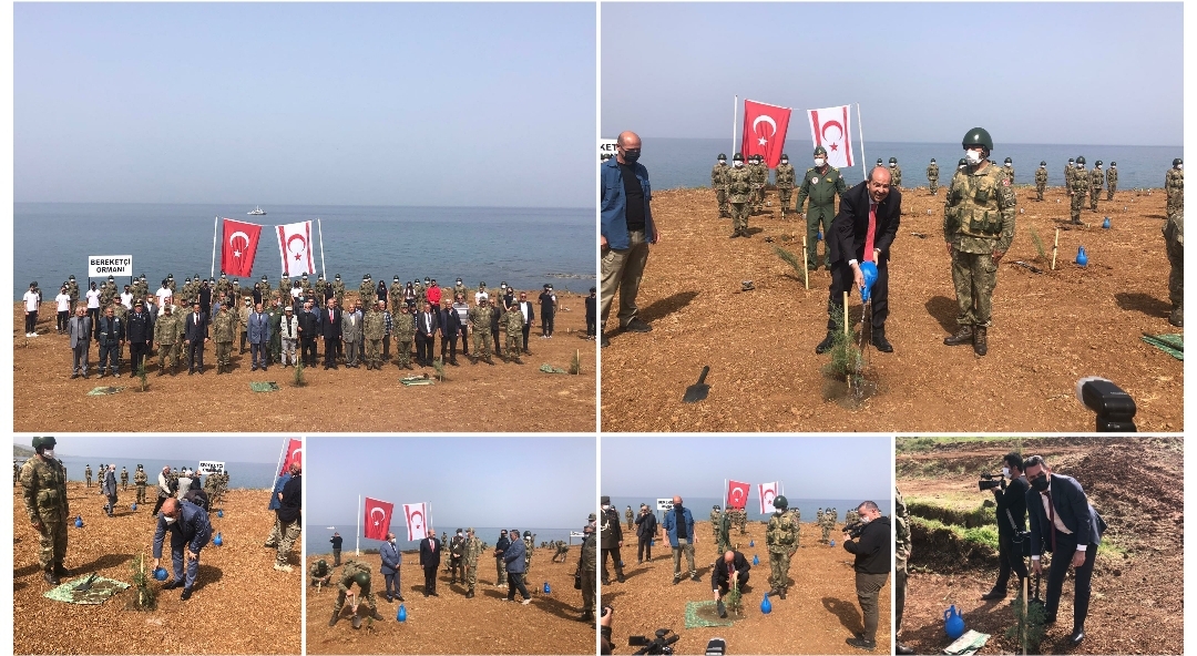 Güvenlik Kuvvetleri Komutanı Tümgeneral Zorlu Topaloğlu da, Mehmetçik ve mücahitlerin omuz omuza bu yıl da ağaçlandırma planları kapsamında adada tüm birliklerde fidan dikimi yaptığını belirtti.