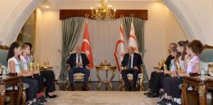 Cumhurbaşkanı Ersin Tatar, KKTC Halter ve Vücut Geliştirme Federasyonu Başkanı Ali Dahlameroğlu, Nev Çocuk Fitness takımı ve milli takım antrenörü Neval Çelebioğlu’nu kabul ederek görüştü…Kabuldeki konuşmasında, kız sporcularımızın KKTC adına podyuma çıkarak ülkemizi başarıyla temsil ettiğini, sporcularımızın performansları sonucu çok büyük bir başarı gösterdiğini ifade eden Cumhurbaşkanı Tatar, bu başarıların kendisini gururlandırdığını dile getirdi…KKTC bayrağını ekranlarda görünce duygulandığını ifade eden Cumhurbaşkanı Tatar, çocukların başarısının bütün dünyada duyulduğunu ve bu başarıda emeği geçen aileler ve antrenörleri tebrik etti…KKTC Halter ve Vücut Geliştirme Federasyonu Başkanı Ali Dahlamer de konuşmasında; “Amacımız, KKTC’yi dünyada tanıtabilmek ve üzerimize düşeni en iyi şekilde yerine getirmektir” ifadelerini kullandı…