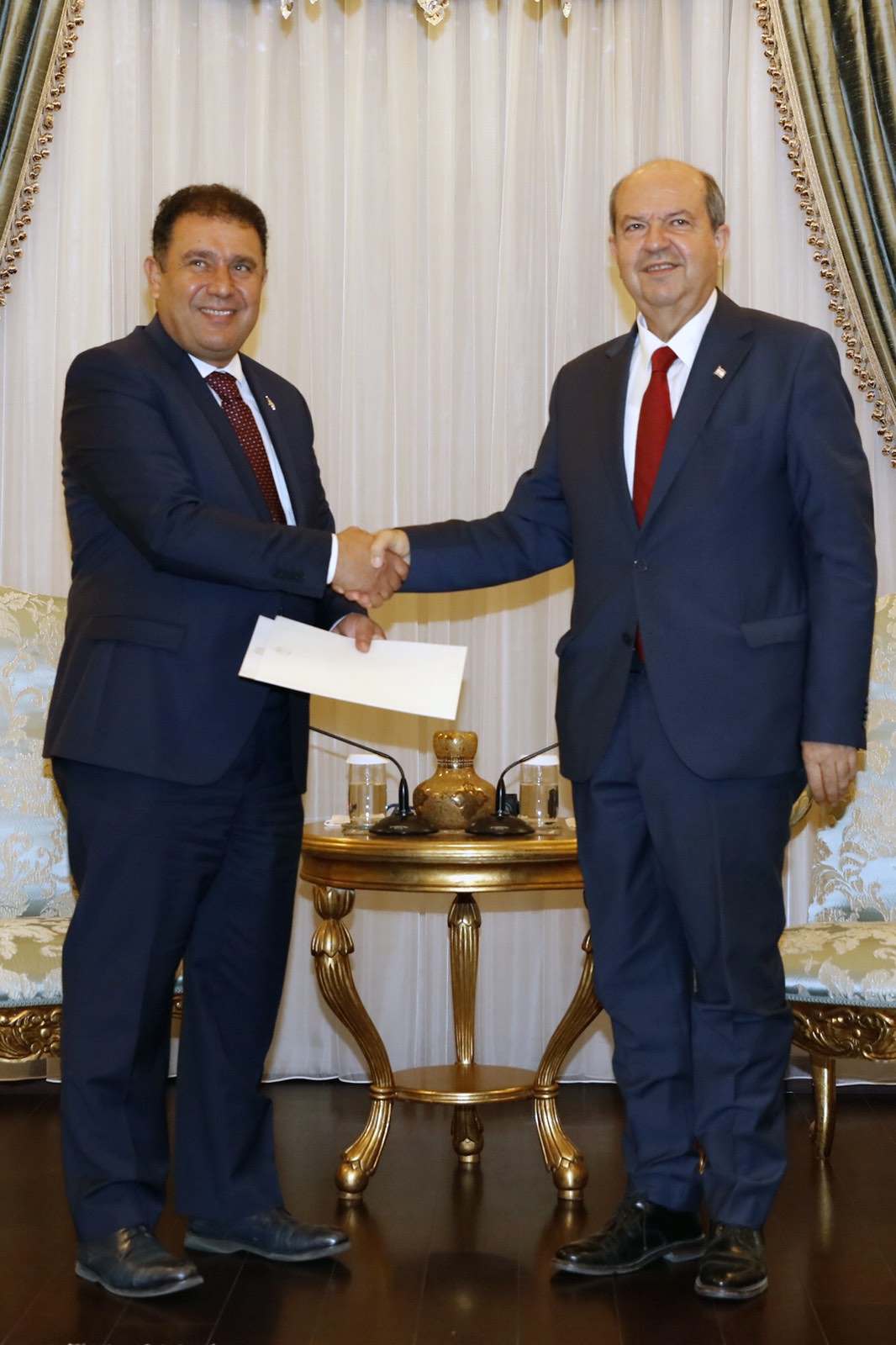 Hükümet kurma çalışmaları çerçevesinde siyasi partilerle görüşmelerini tamamlayan Cumhurbaşkanı Ersin Tatar, Ulusal Birlik Partisi Başkan Vekili Ersan Saner’i kabul etti. Cumhurbaşkanı Ersin Tatar, teamül gereği, mecliste en fazla sandalyeye sahip Saner’i hükümeti kurmakla görevlendirdiğini kaydederek, ülke için hayırlı olması dileğinde bulundu.