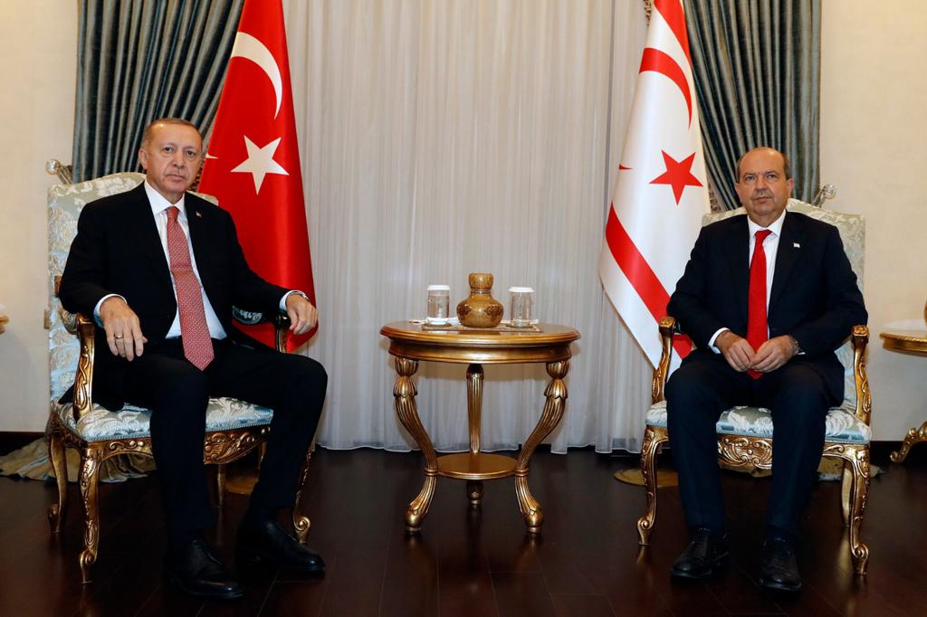 Cumhurbaşkanı Tatar, görüşmede, Kıbrıs meselesindeki son durumu Türkiye Cumhuriyeti Cumhurbaşkanı Erdoğan’a aktardı.