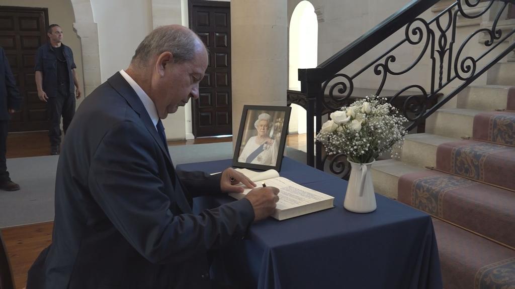 Cumhurbaşkanı Ersin Tatar, İngiliz Yüksek Komiserliği’nde Kraliçe 2’nci Elizabeth’in vefatı dolayısıyla oluşturulan taziye defterini imzaladı.