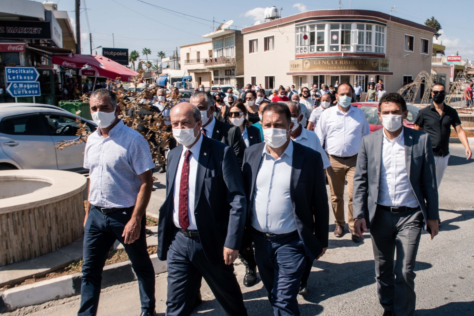 Tatar, ardından kendisine eşlik edenlerle birlikte aile fotoğrafı çektirdi.Bölgede bir de yürüyüş gerçekleştiren Ersin Tatar, vatandaşlarla sohbet etti, Cumhurbaşkanlığı Seçimi ile ilgili görüşlerini paylaştı, seçim vizyonuna destek istedi.