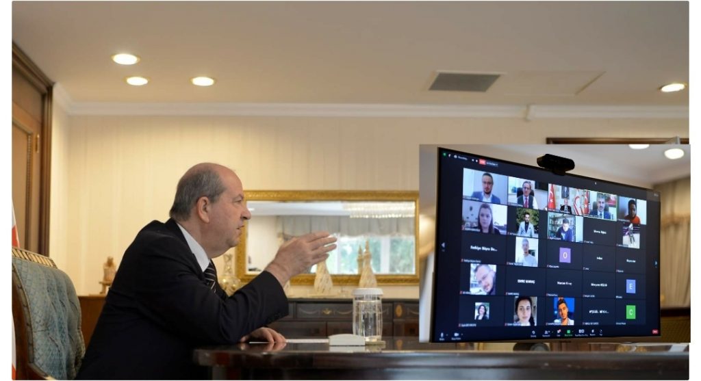 Cumhurbaşkanı Ersin Tatar, Akdeniz Üniversitesi ev sahipliğinde; Antalya Büyükşehir, Konyaaltı, Muratpaşa ve Kepez belediyeleri, Türk Ocakları Antalya Şubesi, Kıbrıs Türk Kültür Derneği, Türk Hava Kurumu Antalya Şubesi, Çam Limanı Akademi, Antalya Ticaret ve Sanayi Odası ve Akdeniz Gençlik Sanat Araştırma ve Eğitim Derneği’nin katkılarıyla yapılan, “Fethinin 450. Yılında Uluslararası Kıbrıs Sempozyumu’nun” gerçekleşmesine katkı koyanları kutlamak amacıyla Antalya Büyükşehir Belediye Başkanı, Antalya Akdeniz Üniversitesi Temsilcileri ve Antalya Sivil Toplum Örgütü Temsilcileri ile çevrim içi bir görüşme gerçekleştirdi.