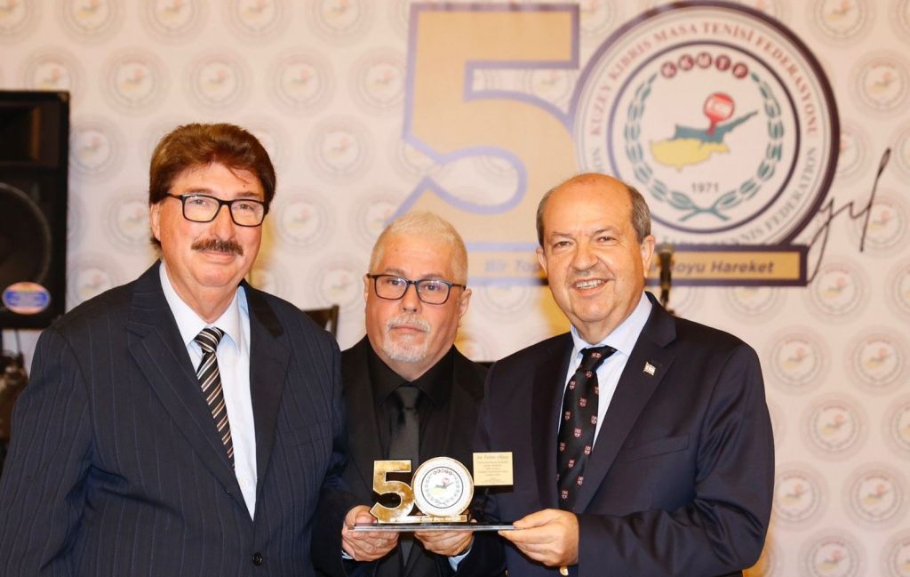 Ersin Tatar dün akşam düzenlenen Kuzey Kıbrıs Masa Tenisi Federasyonu 50. Yıl etkinliğine katıldı.