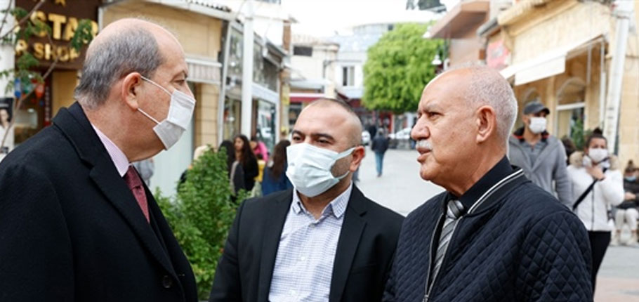 Cumhurbaşkanı Ersin Tatar, Lokmacı Sınır Kapısı’nda incelemelerde bulundu, Arasta esnafı ile sohbet etti, esnafın sorunlarını dinledi.