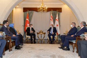 President Ersin Tatar on Tuesday received the President of the Turkey–TRNC Inter-parliamentary Friendship Group Orhan Erdem and his accompanying delegation who were in the country as part of the 38th anniversary of the establishment of the TRNC.