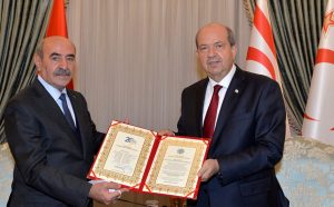 According to a statement released by the presidency, President Ersin Tatar was awarded the honorary membership to the Union of Chamber of Turkish World Engineers and Architects.