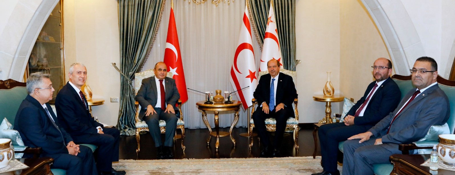 Cumhurbaşkanı Ersin Tatar, Türkiye Cumhuriyeti Lefkoşa Büyükelçisi Ali Murat Başçeri ile KKTC’deki Türkiye Büyükelçiliği ticaret başmüşavirliğine yeni atanan Cihan Ünal ve Aytaç Yenal’ı kabul ederek görüştü.