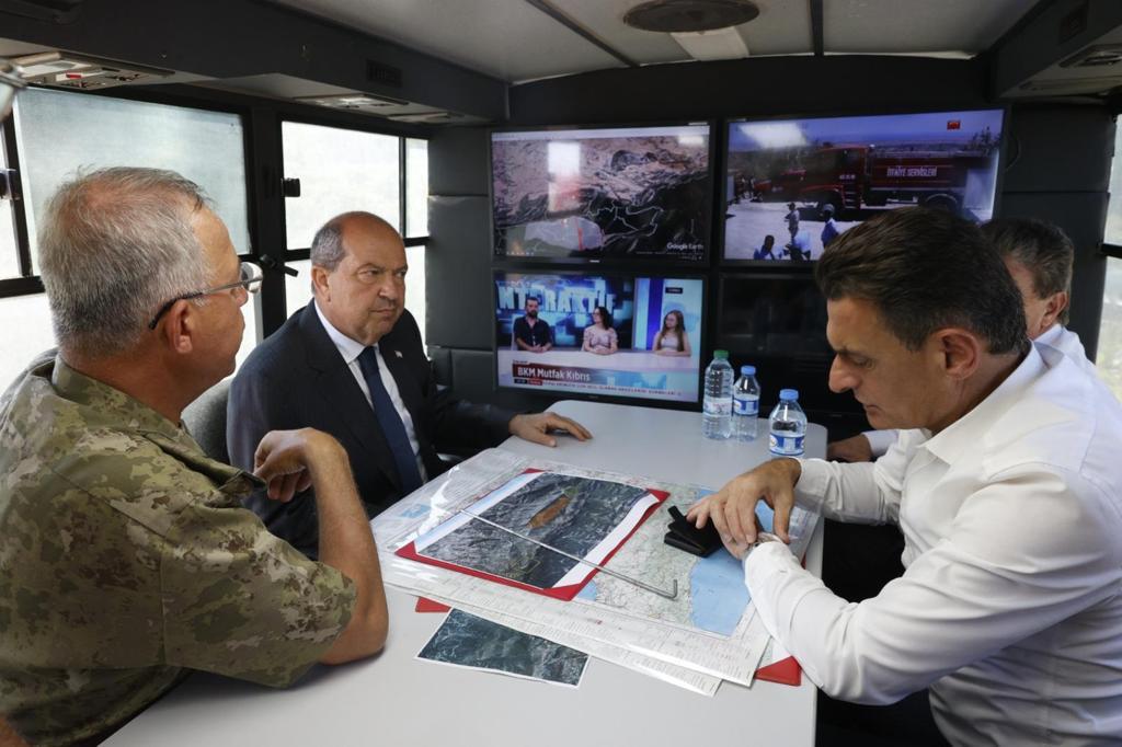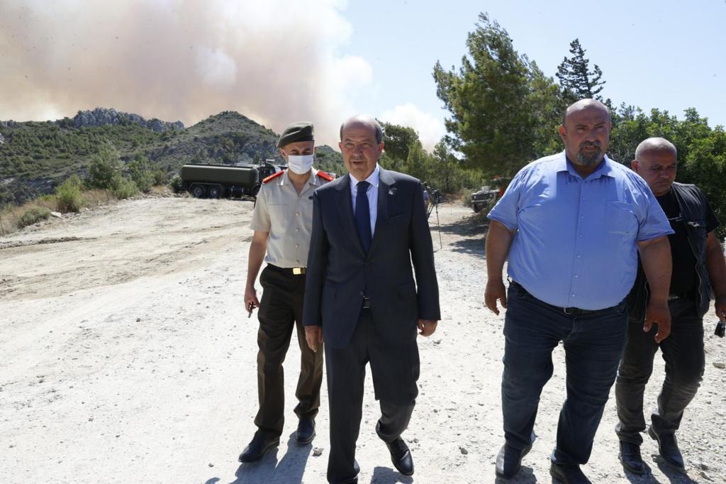 Tatar “Çok büyük bir yangın. Türkiye’den helikopter, uçak ve her türlü araç gereç burada. Aynı zamanda İngiliz üslerinden ve Güney Kıbrıs’tan da helikopter talep edilmiştir. Henüz gelmedi ama gelebilir” diye konuştu.