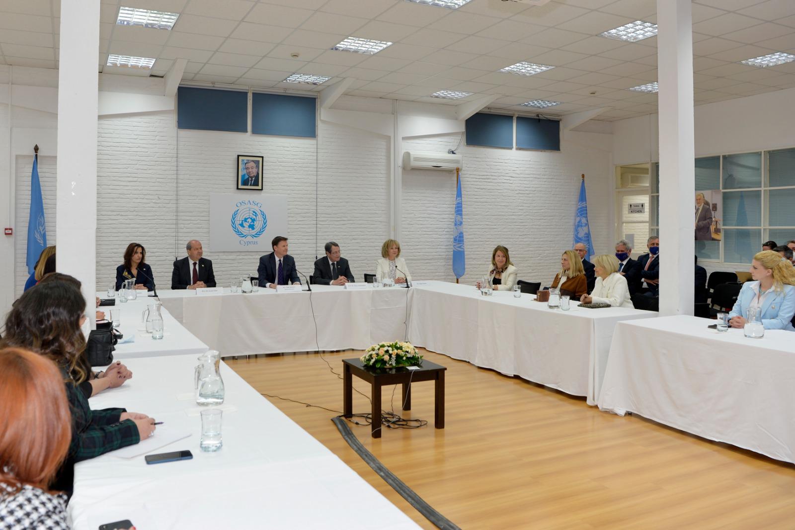 Cumhurbaşkanı Ersin Tatar ve Rum Lider Nikos Anastasiadis, kadınların olası bir uzlaşı sürecine etkin katılımını sağlamak amacıyla hazırlanan eylem planının lansmanına katıldı.