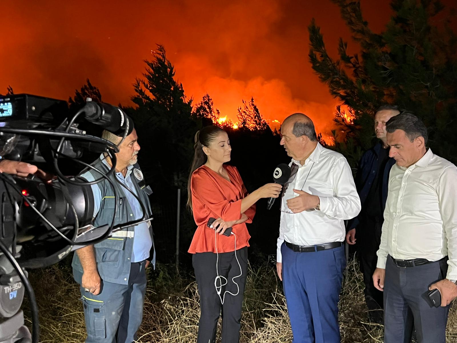 Cumhurbaşkanı Tatar, saat 23.00 sıralarında yangın bölgesinde incelemelerinin ardından BRT’den canlı yayında açıklama yaptı.