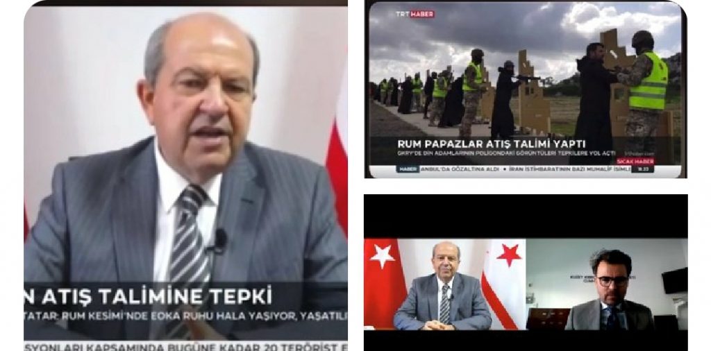 Cumhurbaşkanı Ersin Tatar TRT Haber’e yaptığı açıklamada, Rum papazların askeri bir bölgede makineli silahlarla atış talimi yapmasına tepki göstererek; “EOKA’cı ruhu, Kıbrıs’ın Yunanistan’a bağlanması hayali her zaman Kıbrıs’ın Rum kesiminde yaşanmaktadır, yaşanıyor” dedi.