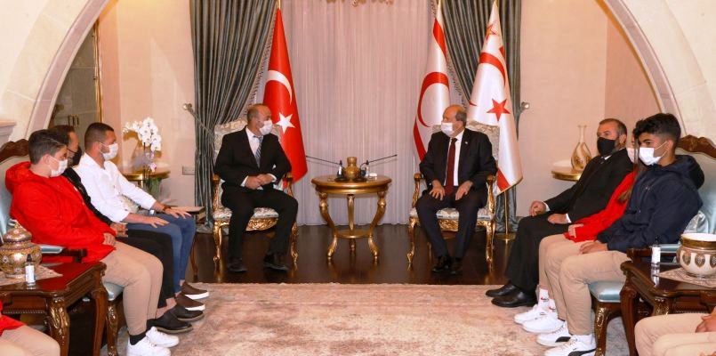 Cumhurbaşkanı Ersin Tatar, Lefkoşa Türk Lisesi Müdürü Niyazi Türkseven, beden eğitimi öğretmenleri ve okulun kız-erkek futsal takımını kabul ederek görüştü.
