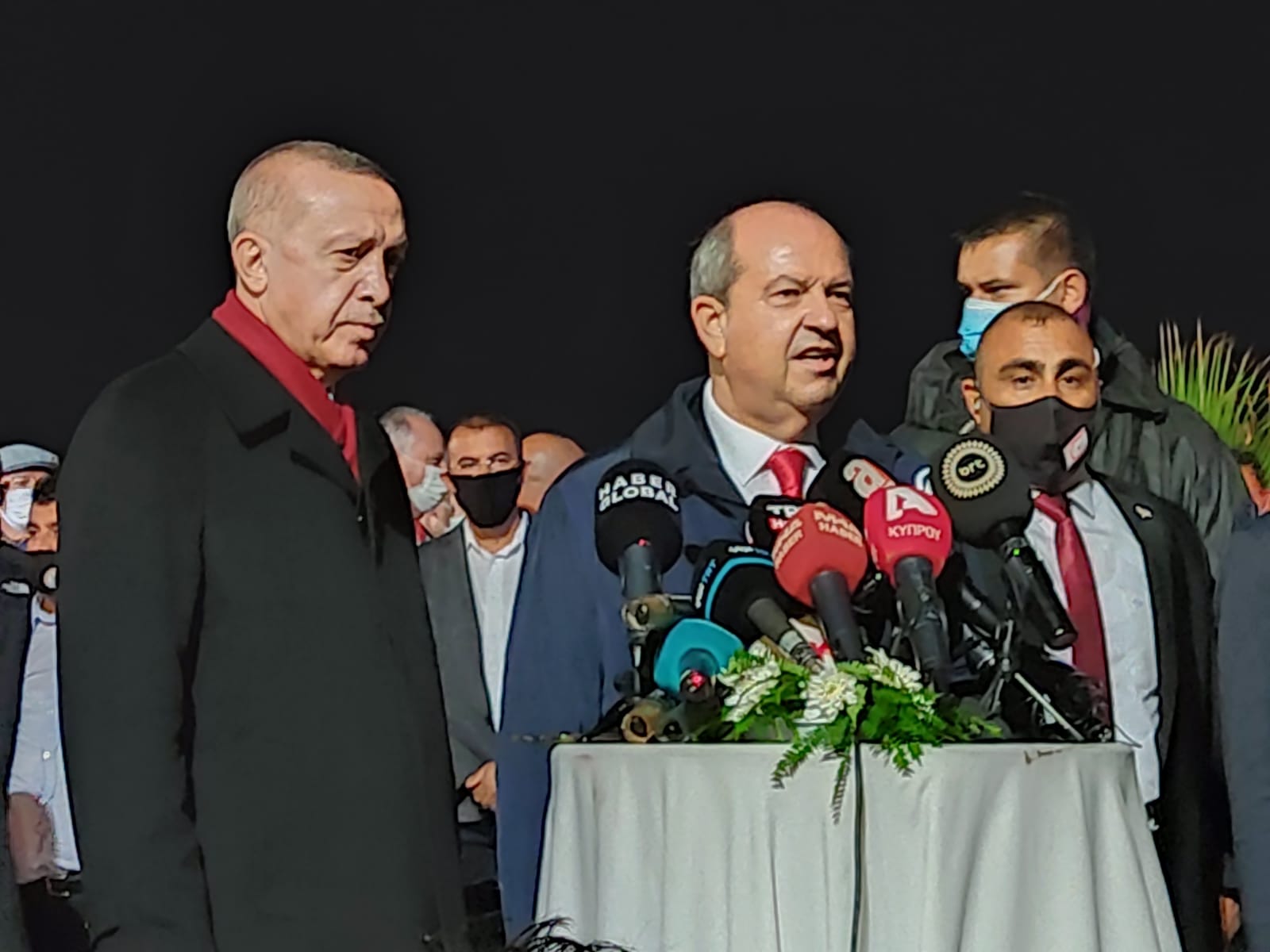 Cumhurbaşkanı Ersin Tatar ile TC Cumhurbaşkanı Recep Tayyip Erdoğan Maraş’ta yaptığı temas ve incelemelerin ardından basına açıklamalarda bulundu.