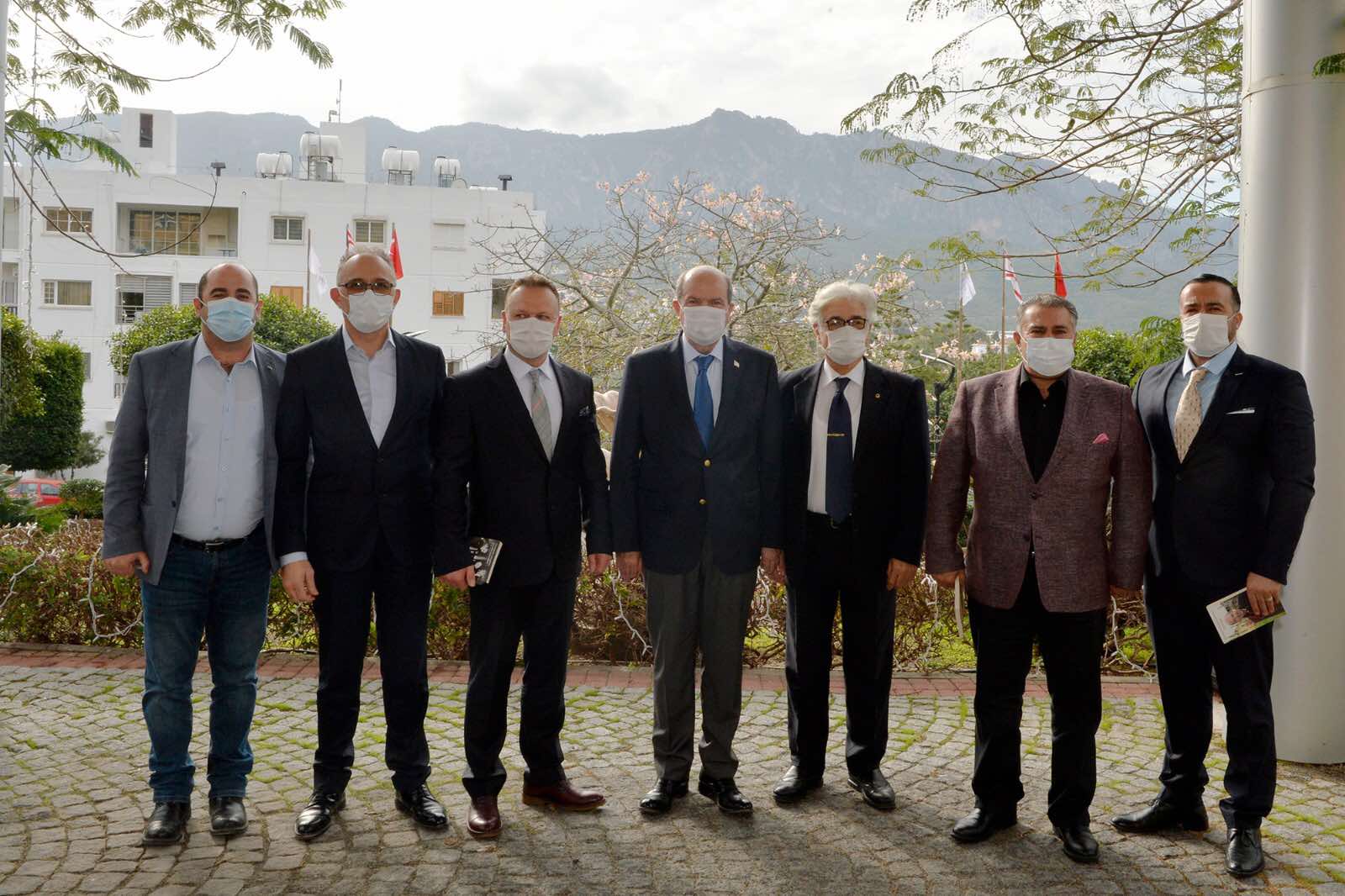 Cumhurbaşkanı Tatar iş insanları ile yaptığı toplantıda, pandemiye rağmen ekonomiyi ayakta tutabilmek için çalışmalara ara verilmeden devam edildiğini kaydetti.