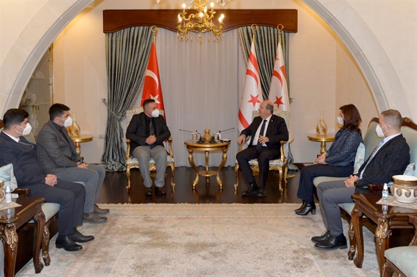 Cumhurbaşkanı Ersin Tatar, Mersin Kamu Hastaneleri Hizmetleri Başkanı Uzm. Dr. Tunga Barçın ve beraberindekileri kabul etti.