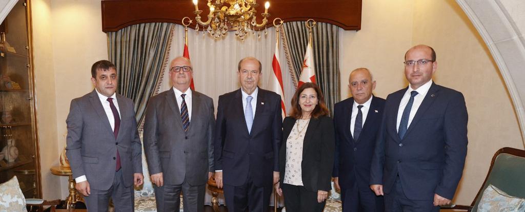 Cumhurbaşkanı Ersin Tatar, CEO/Direktör Bülent Çetinkaya, Rektör Prof. Dr. Mehmet Köksal ve Prof. Dr. Şule Aker’den oluşan Avrupa Liderlik Üniversitesi heyetini kabul etti.