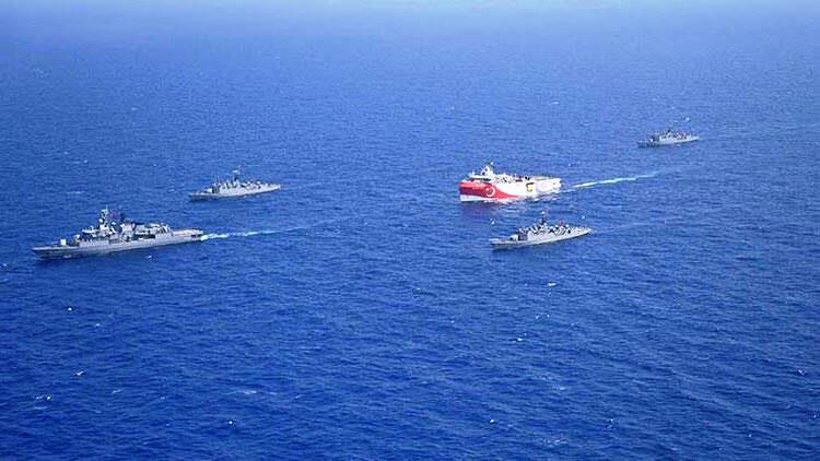 Bakanlık açıklamasında ‘Deniz Kuvvetlerimize ait fırkateyn ve korvetler, Doğu Akdeniz’deki yetki alanlarımızda çalışmalarını sürdüren ORUÇREİS araştırma gemisine refakat/koruma görevini kararlılıkla sürdürüyor. Bölgede hiçbir hukuksuzluğa ve kabadayılığa izin verilmeyecek!’ denildi.