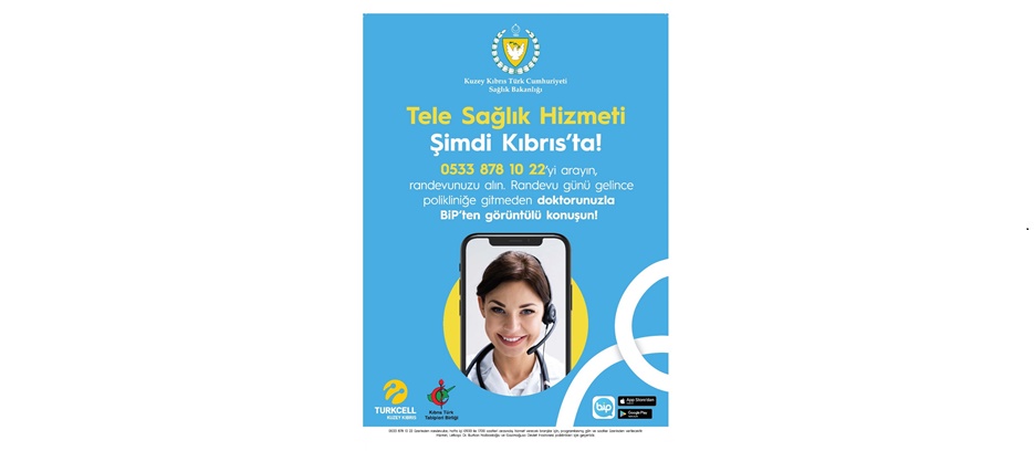 Sağlık Bakanlığı himayelerinde, Kıbrıs Türk Tabipleri Birliği ve Kuzey Kıbrıs Turkcell iş birliğinde akıllı randevu sistemi ile çalışacak olan Tele Sağlık Platformu hayata geçirildi. Tele Sağlık Platformu’nun hizmete açılmasına ilişkin yapılan açıklamada, hastanede fiziki olarak sunulan poliklinik hizmetlerine ek olarak dijital bir platformda görüntülü görüşme ile teknolojik bir çözüm sunulacağı, bunun altyapısının sosyal sorumluluk çerçevesinde Kuzey Kıbrıs Turkcell tarafından ücretsiz olarak sağlanacağı belirtildi.