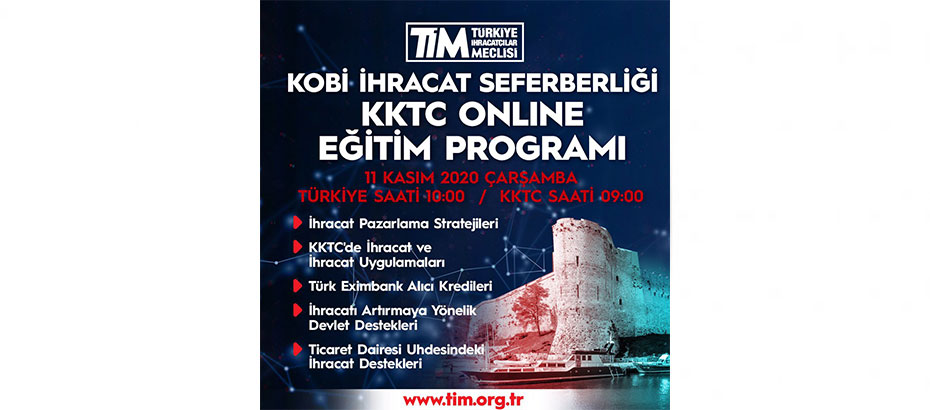 Kıbrıs Türk Sanayi Odası (KTSO) ve oda bünyesinde kurulmuş olan Türkiye İhracatçılar Birliği (TİM) KKTC Ofisi, 11 Kasım Çarşamba günü 09.00-16.30 saatleri arasında “KOBİ İhracat Seferberliği Eğitimi” kayıt yaptıran herkese açık ve online olarak gerçekleştirilecek.