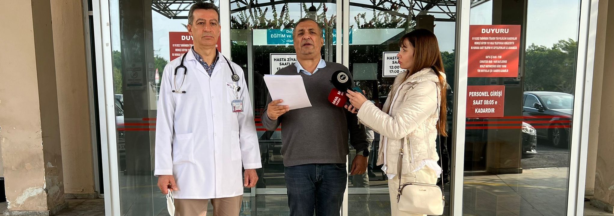 Kıbrıs Türk Hekimler Sendikası (TIP-İş) Başkanı Dr. Mustafa Taşcıoğlu Gazimağusa Devlet Hastanesi’nde basın açıklamasında bulundu.