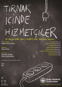 Doğu Akdeniz Üniversitesi (DAÜ) Sosyal ve Kültürel Aktiviteler Müdürlüğü tarafından organize edilen etkinlik kapsamında, “Tırnak İçinde Hizmetçiler” adlı tiyatro oyunu, salı günü, saat 19:30’da, DAÜ Aktivite Salonu’nda sahnelenecek.