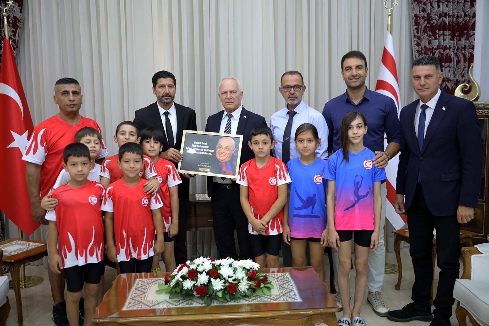Cumhuriyet Meclisi Şeref Salonu’nda gerçekleşen kabulde Federasyon Başkanı Hasan Sapsızoğlu’nun yanı sıra Asbaşkan Basri Aydoğan, Yönetim Kurulu üyesi Selman Beber, Antrönör Bilgin Diker ile jimnastikçi çocuklar yer aldı. Kabulde Cumhuriyet Meclisi idari, Mali, Teknik ve Parlamenter Hizmetler Müdürü Hasan Büyükoğlu da hazır bulundu.