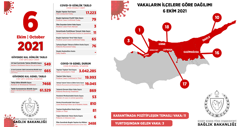 17 of the cases are from the Lefkoşa District, 18 from the Girne District, 16 from the Gazimağusa District, 10 from the Iskele District one from the Güzelyurt District, and three from the Lefke District.