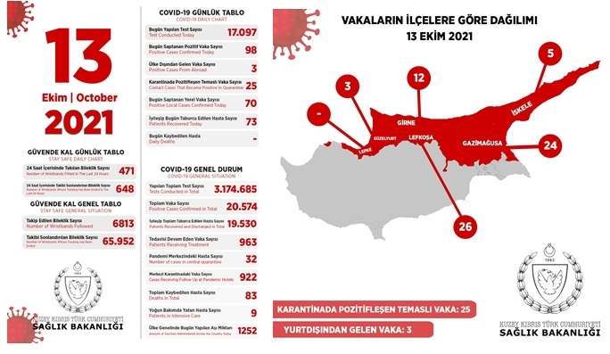 26 of the cases are from the Lefkoşa District, 12 from the Girne District, 24 from the Gazimağusa District, five from the Iskele District and three from the Güzelyurt District.