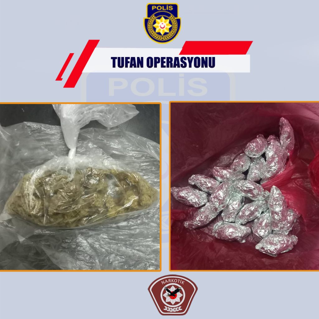 Operasyon sonucu; 28 yaşındaki P.O.O.’nun tasarrufunda yaklaşık bir gram ağırlığında hintkeneviri türü uyuşturucu olduğuna inanılan madde, ikametgahında yapılan aramada ise satışa hazır paketler halinde getirilmiş yaklaşık 65 gram ağırlığında hintkeneviri türü uyuşturtucu olduğuna inanılan madde bulunarak emare olarak alındı.