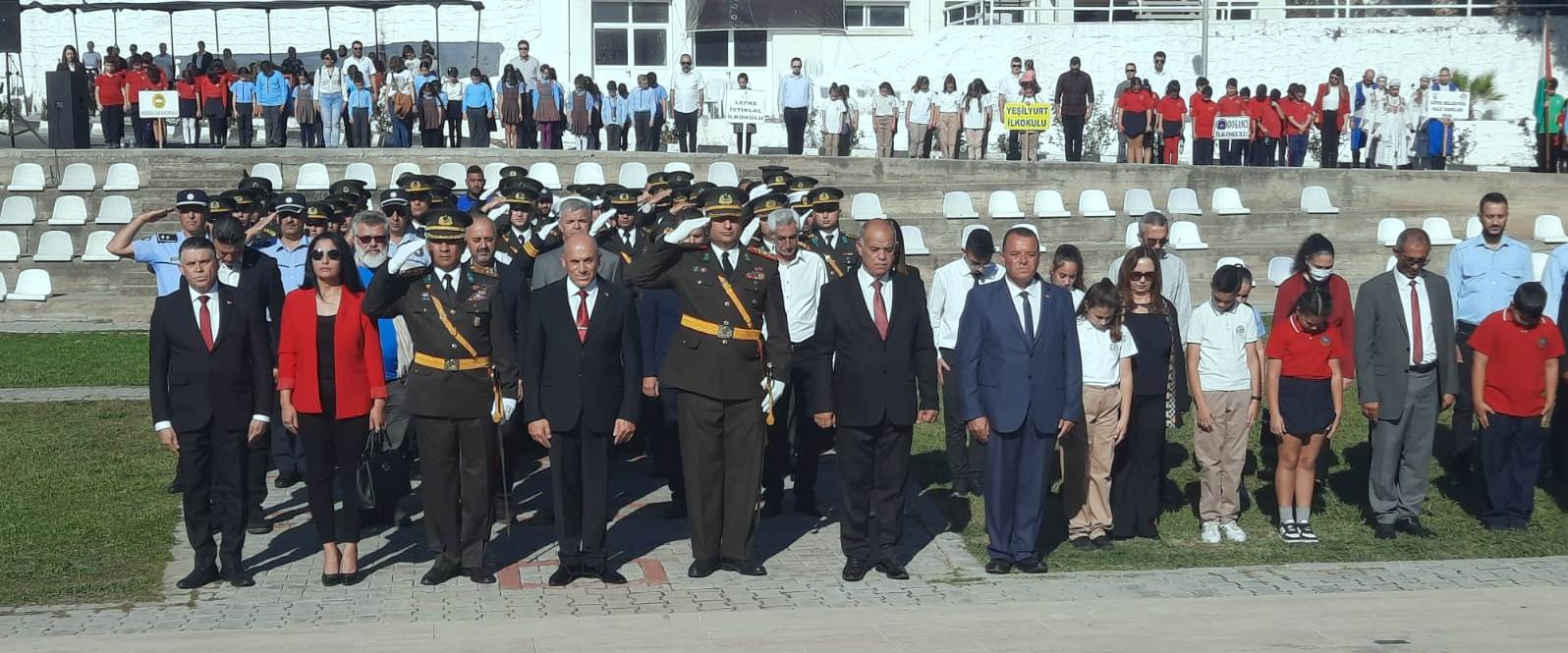 Cumhuriyet Bayramı nedeniyle Lefke’de de tören düzenlendi. Lefke’de tören öncesinde bando eşliğinde kortej gerçekleştirildi. Ardından Atatürk Anıtı önünde tören düzenledi . Törende, konser ve gösteriler yer aldı…