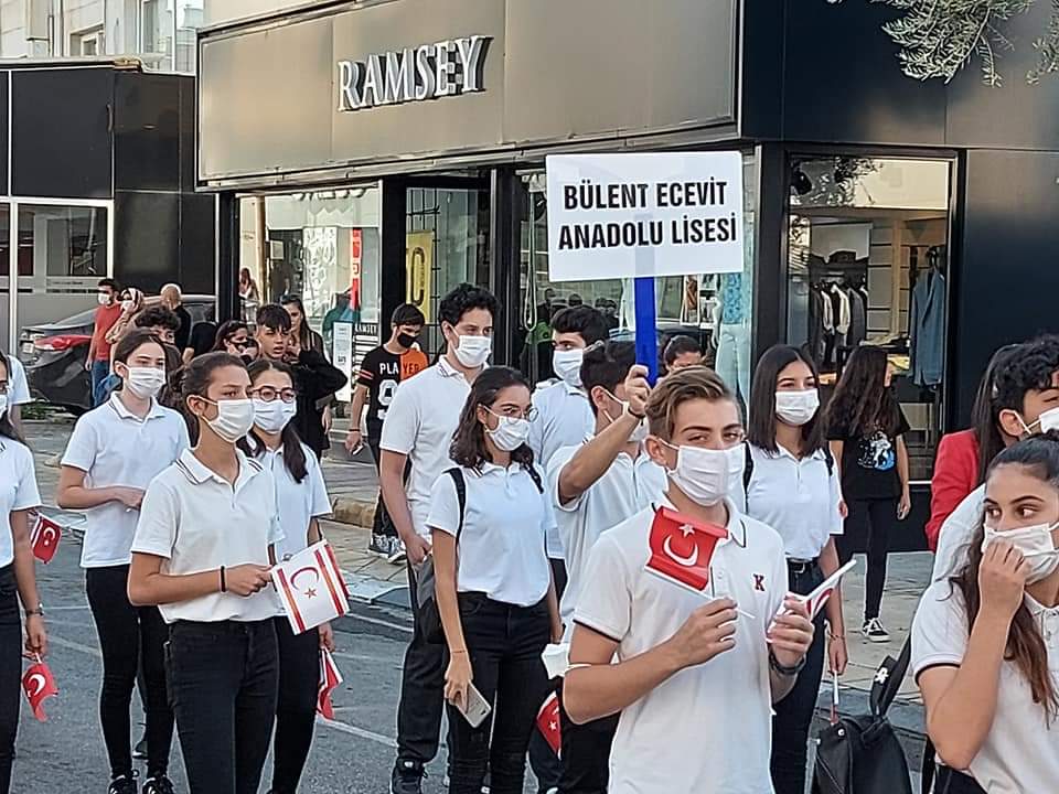 Milli Eğitim ve Kültür Bakanlığı’na bağlı Lefkoşa bölgesindeki okullardan öğrenciler, öğretmenler ve izcilerin katılımıyla gerçekleşen, TC-KKTC bayraklarının taşındığı yürüyüşe vatandaşlar da eşlik etti.
