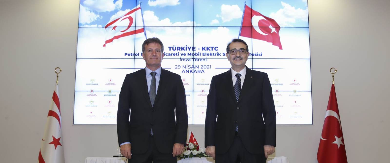 Türkiye ile KKTC arasında “Petrol Ürünleri Ticareti ve Mobil Elektrik Santralleri Tesisi İmza Töreni”, Ankara’da Bakanlık binasında Dönmez ve Başbakan Yardımcısı, Ekonomi ve Enerji Bakanı Erhan Arıklı’nın katılımıyla düzenlendi.