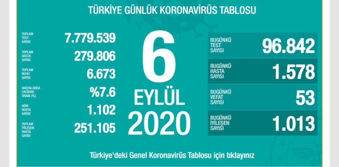 Türkiye’de son 24 saatte 1578 kişiye Kovid-19 tanısı konuldu Türkiye’de son 24 saatte 96 bin 842 Kovid-19 testi yapıldı, 1578 kişiye hastalık tanısı konuldu.