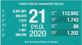 Türkiye Günlük Koronavirüs Tablosu, Sağlık Bakanlığının bilgilendirme sayfası “covid19.saglik.gov.tr” üzerinden paylaşıldı. Güncel verilere göre, son 24 saatte 112 bin 942 Kovid-19 testi yapıldı, 1743 kişiye hastalık tanısı konuldu.
