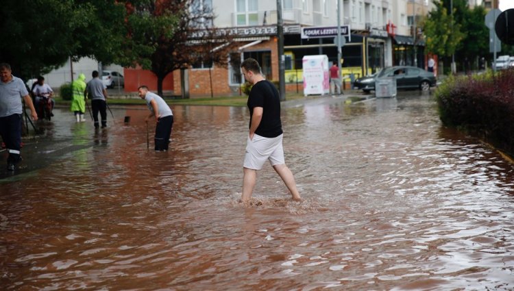 Sağanak nedeniyle cadde ve sokaklar göle dönerken, bazı ev ve iş yerlerini su bastı.