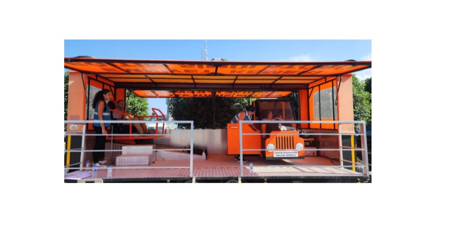 Oryantasyon eğitimlerinde emniyet kemeri simülatörü de kullanıldı ve katılımcılar kaza anında çarpma ve savrulma hissi güvenli ortamda yaşatılarak emniyet kemerinin önemi anlatıldı.