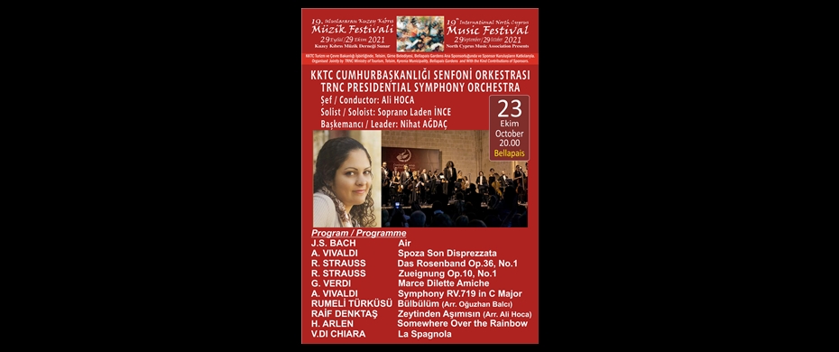 19’ncu Uluslararası Kuzey Kıbrıs Müzik Festivali KKTC Cumhurbaşkanlığı Senfoni Orkestrası Konseri ile devam ediyor.